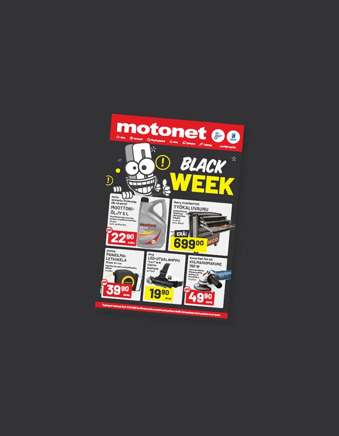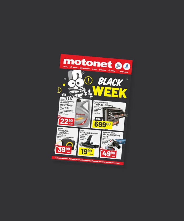 Tuotteet saatavilla tähän hintaan vain Black Weekin ajan! Tarjoukset voimassa 2.12. asti tai niin kauan kuin tuotteita tarjousaikana riittää. Kampanjassa olevia tuotteita on rajoitettu erä, niitä ei voi varata ja niiden saatavuus voi vaihdella tavarataloittain.
