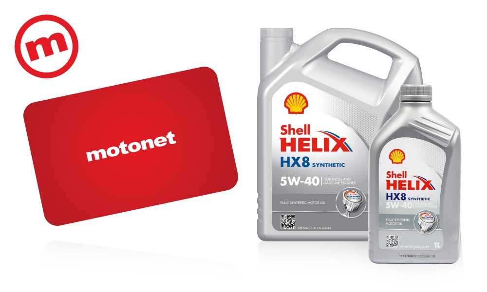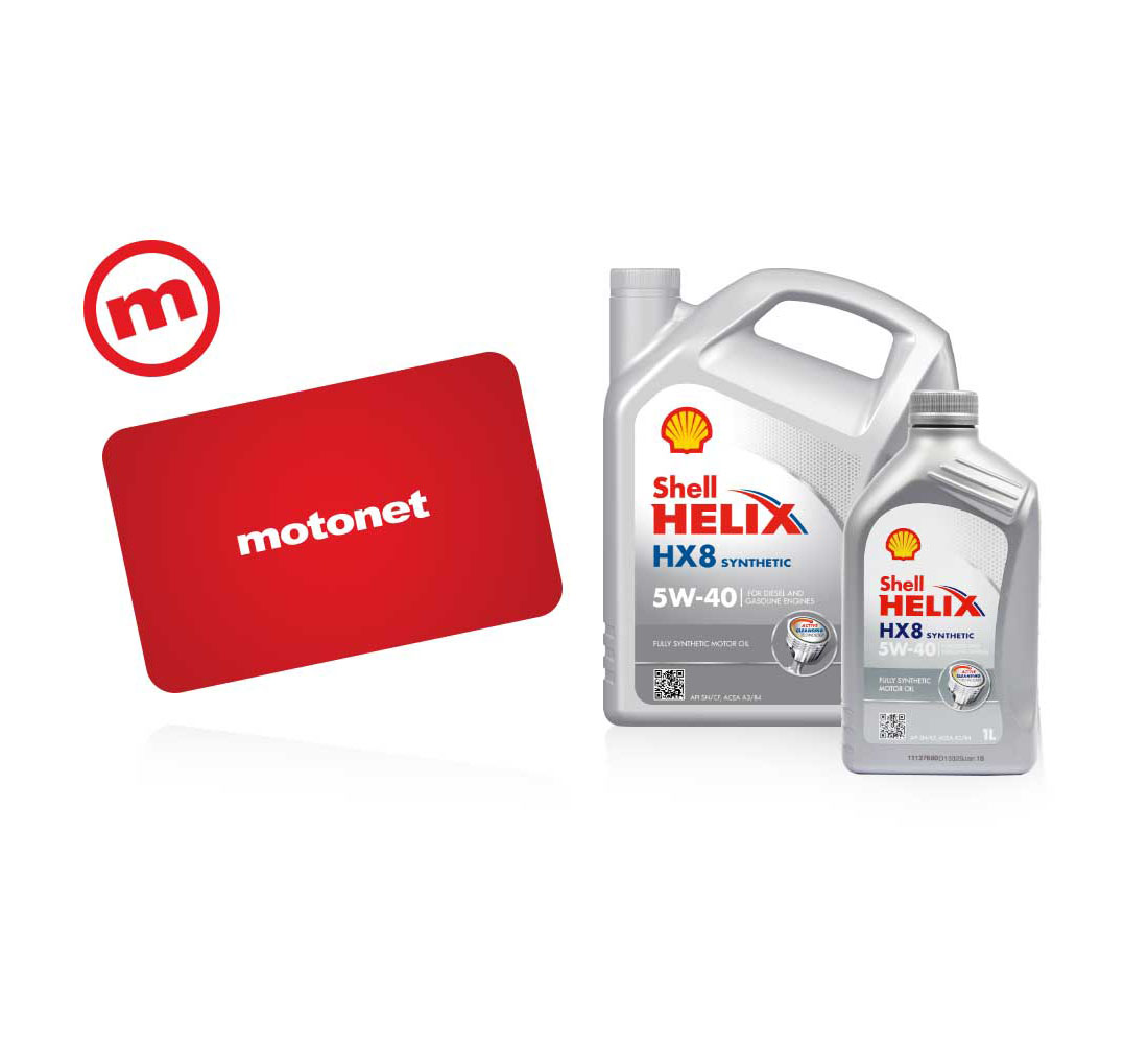 Shell Helix HX8 5W-40 -moottoriöljyä ostaneiden kanta-asiakkaiden kesken arvotaan 1 000 euron arvoinen Motonet-lahjakortti!