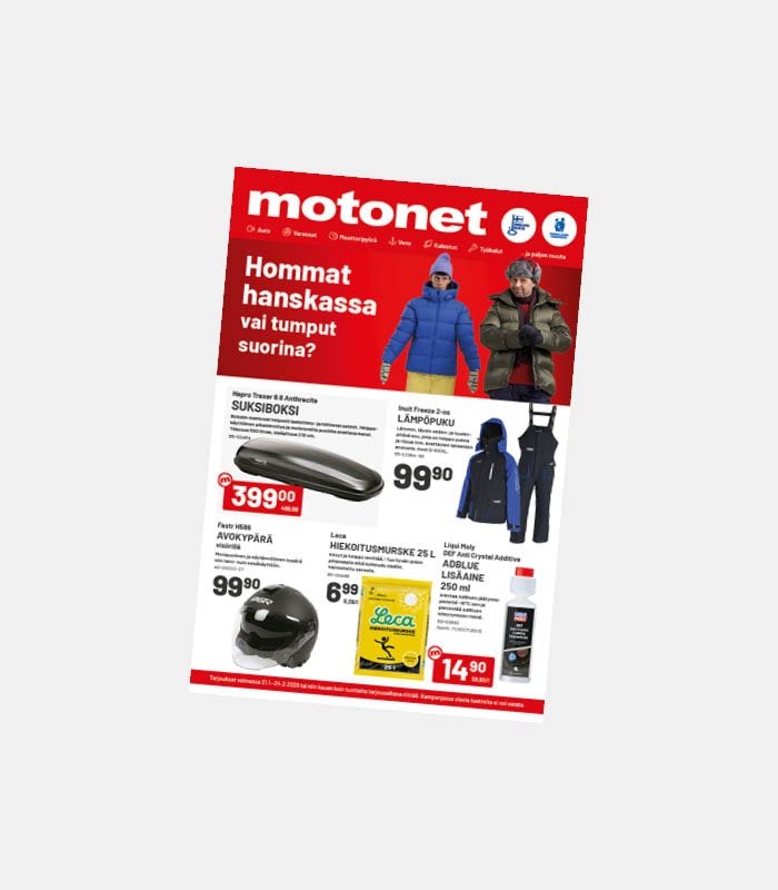 Keräsimme valikoiman talven parhaita tuotteita, joilla koukutut taatusti vuoden viileimpään vuodenaikaan! Tarjoukset voimassa 21.1.–24.2.2026 tai niin kauan kuin tuotteita tarjousaikana riittää.