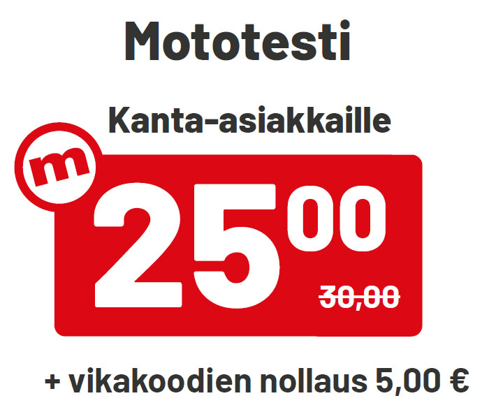 MOTOTESTI KANTA-ASIAKKAILLE 25,00 € (30,00 €)