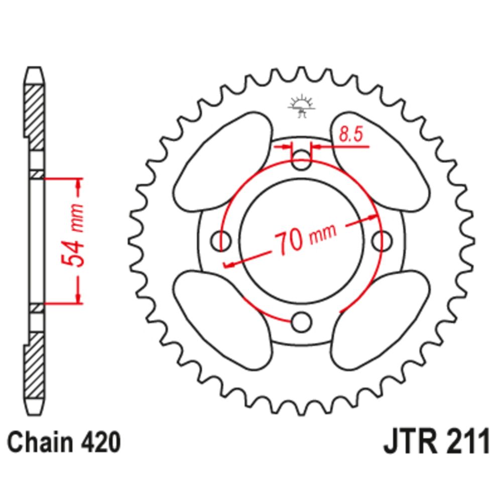 JT:n teräs takarattaissa valmistusmateriaalina on käytetty huippulaadukasta C49 hiiliterästä. JT tuotenumero JTR211.38, hammasluku 38.